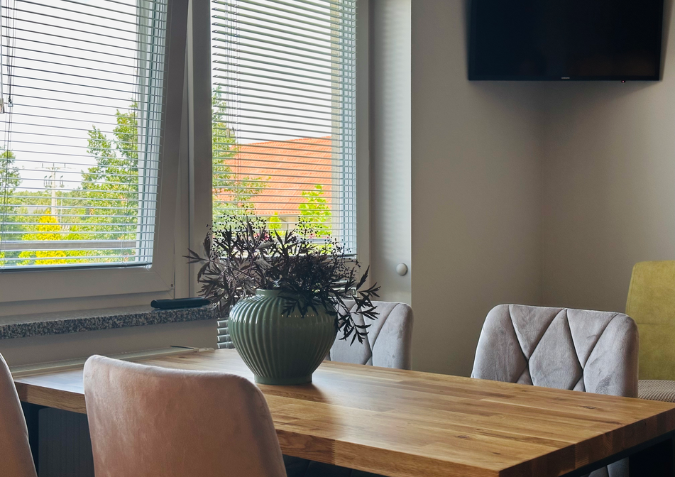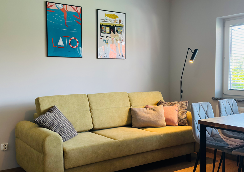 Studio o powierzchni 30 m² przeznaczone jest dla 4 osób. Znajdują się w nim dwie rozkładane sofy, szafa, telewizor oraz aneks kuchenny z płytą indukcyjną, mikrofalą, lodówką, czajnikiem i pełnym wyposażeniem kuchennym. Łazienka posiada prysznic, umywalkę z lustrem i suszarkę do włosów. Na życzenie dostępne jest łóżeczko dziecięce. Pokój położony jest od strony zachodniej, z widokiem na ogród i plac zabaw. Do dyspozycji gości jest balkon ze stołem i krzesłami.
